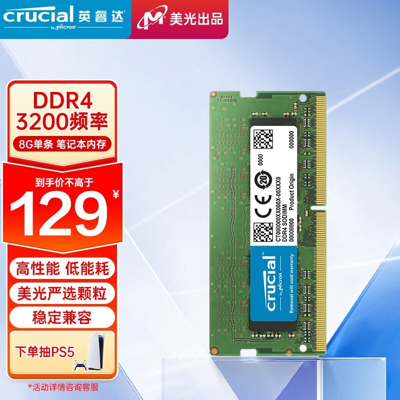 Crucial 英睿達 8GB 筆記本內(nèi)存條僅售129元 超值限時購